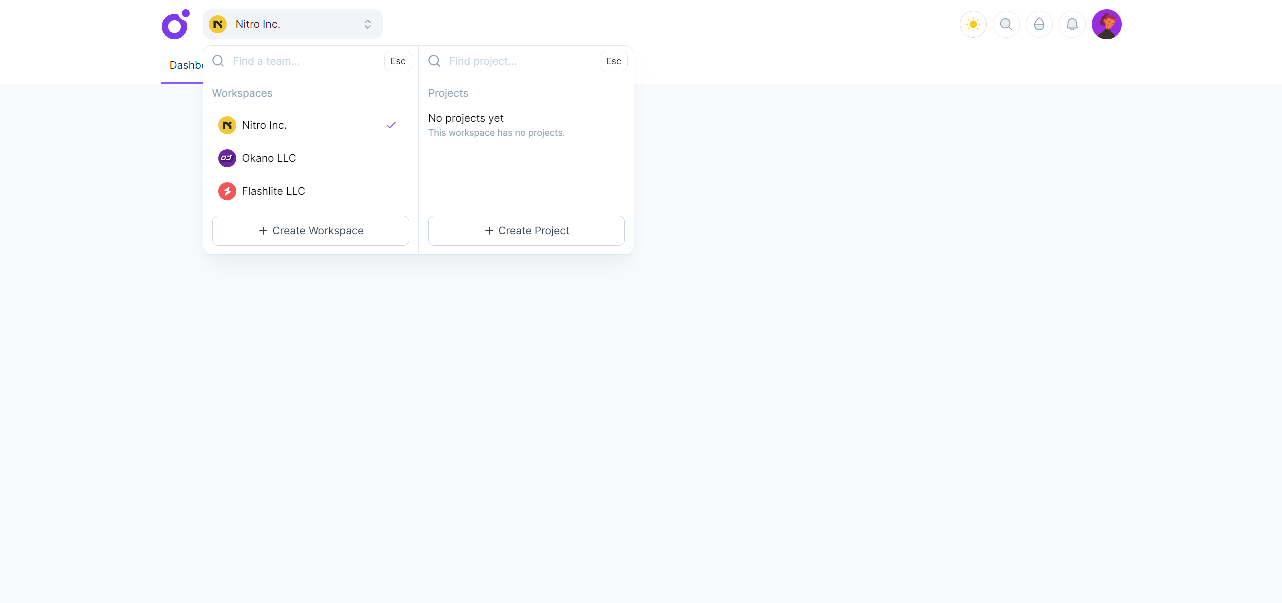 - Workspaces: The top navigation layout provides a navbar header slot that we used to add a workspace selection dropdown. You can replace it with any component of your own.